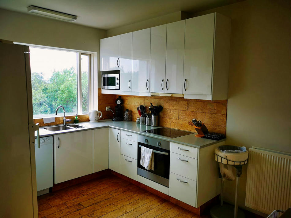 Unser Zimmer hatte zwei Betten, einen Kleiderschrank, einen relativ großen Schreibtisch, sowie ein Waschbecken. Schräg gegenüber von unserem Zimmer waren drei Toilettenräume mit Duschen. Diese drei Duschen haben sich alle Zimmer auf der Flurseite geteilt. Die Badezimmer wurde gerade frisch renoviert und sahen sehr modern aus. Das Dettifoss Guesthouse verfügt über eine gut ausgestattete Küche mit vielen hochwertigen Elektrogeräten, die man selbstverständlich nutzen durfte, sowie einen sehr großen Essensraum mit Sofa in der Ecke und Fernseher an der Wand.