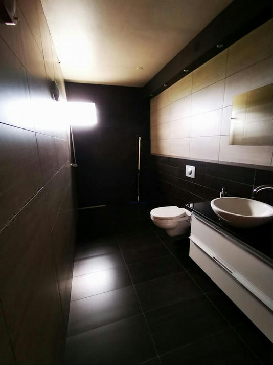 Da wir am Anfang noch alleine in der Unterkunft waren, haben wir uns dort auch noch ein bisschen umgeguckt. Es gab am Ende unseres Flures noch ein sehr großes Zimmer mit mehreren Betten, separatem Eingang und einem eigenen Tisch im Zimmer. Die andere Flurseite der Unterkunft konnte sich noch nicht so glücklich schätzen wie wir, denn dort waren die Badezimmer noch nicht renoviert.