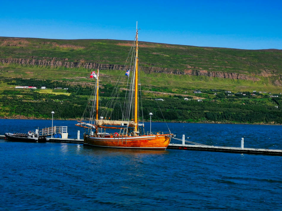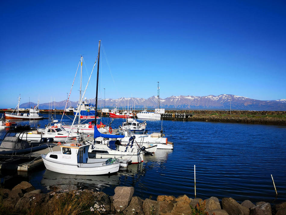Auf dem weiteren Weg zur Unterkunft ging es weiter am Meer entlang, nun Richtung Norden. Das Fischerdorf Dalvik, das auch mit Whale Watching Touren wirbt, liegt auf dem Weg zwischen Akureyri und Olafsjördur, weshalb wir uns kurzfristig entschlossen haben, hier noch einen kurzen Stop einzulegen. Insbesondere hat uns aber auch die Möglichkeit noch einmal einen Supermarkt zu besuchen, überzeugt, hier noch anzuhalten.
