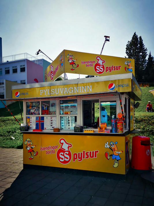 Wir haben uns also hier beim HotDog Stand zwei HotDogs bestellt: Paul war wagemutig und hat einen “English Breakfast HotDog” mit Speck und Bohnen bestellt; Laura hatte den Klassiker mit Zwiebeln und dreierlei Sauce – und wir waren beide außerordentlich zufrieden. Für uns ist das hier der beste HotDog Islands. In Google Maps ist der Stand übrigens aktuell als “Akureyri Hot Dog Stand - Pylsuvagninn á Akureyri” eingetragen. Der Stand hatte einige Tische mit Stühlen aufgestellt, wo wir uns hingesetzt haben, um dem Treiben in der Fußgängerzone etwas zuzuschauen und einen Blick in die mitgebrachten Prospekte zu werfen. Die Zeit hätte stehen bleiben können, so schön war es hier.