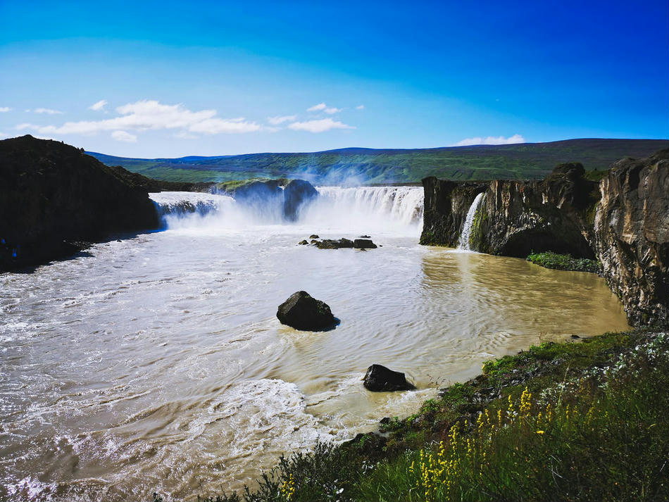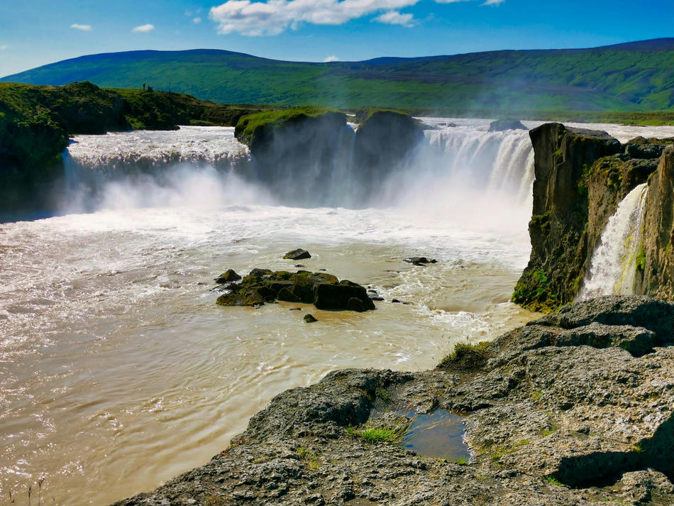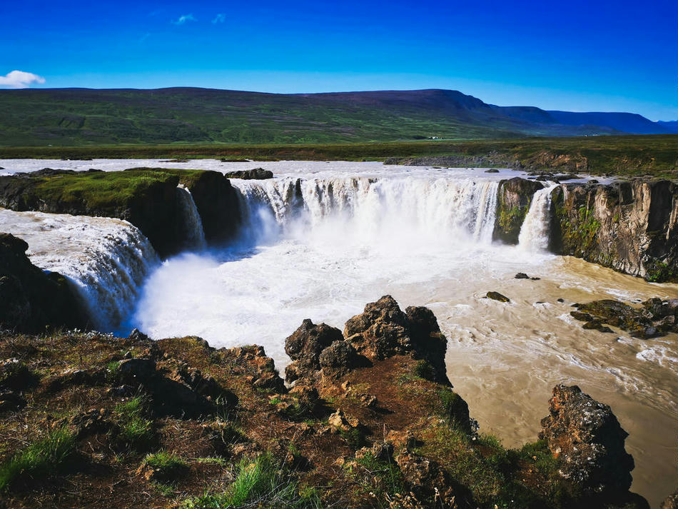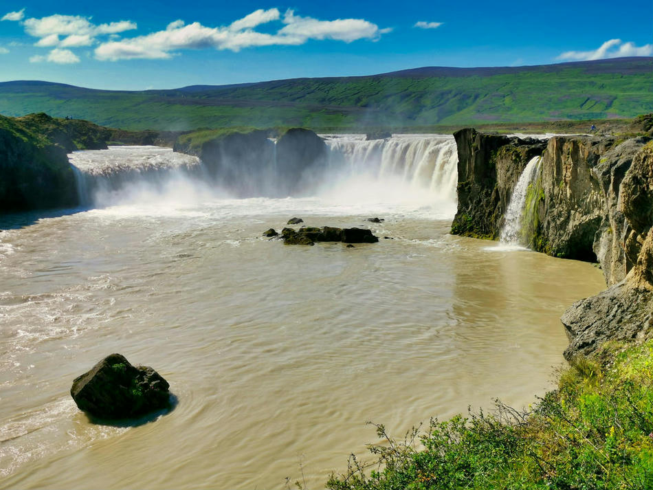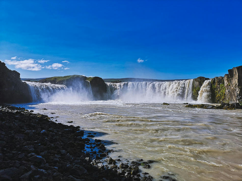 Der Godafoss hat seinen Wasserfall übrigens einer Legende nach vom Wechsel der alten “heidnischen Gottesbilder” zum Christentum. Es wird erzählt, dass die alten Gottesbilder um das Jahr 1000 herum in den “Wasserfall der Götter” (isl.: Godafoss) geworfen wurden, zugunsten des christlichen Gottes.