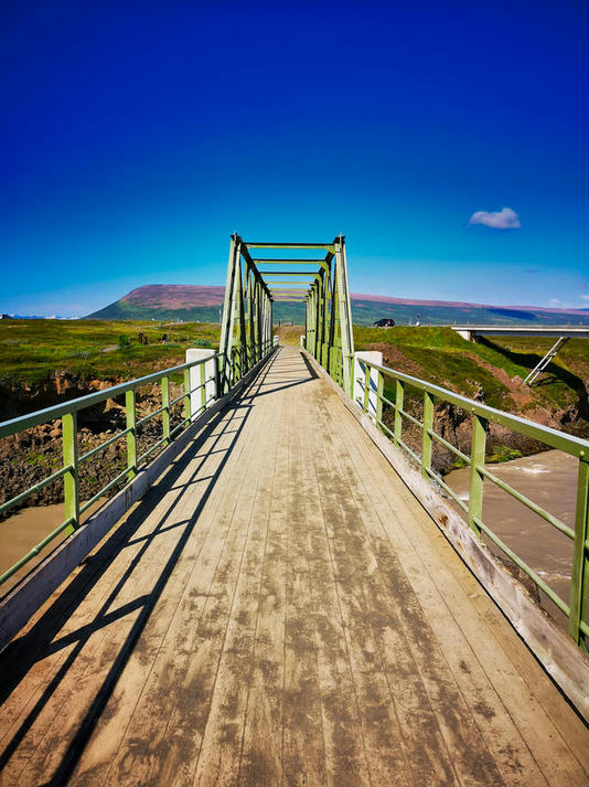 Und der Godafoss hat es auch in sich. Als wir hier waren, kam uns alles sehr frisch angelegt vor. Es gab zwei Parkplätze, einer kurz vor dem Godafoss, einer kurz nach dem Godafoss – und beide sind recht groß. Um den Fluss Skjálfandafljót führen sehr gut ausgebaute Wege, die von beiden Parkplätzen zu erreichen sind. Die beiden Flussseiten sind sogar über eine eigene Fußgängerbrücke nahe der Straße miteinander verbunden, sodass es letztendlich egal ist, welchen der beiden Parkplätze man nutzt.