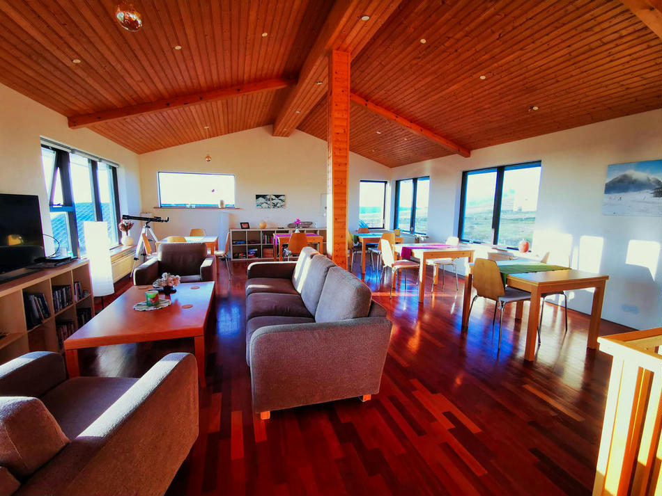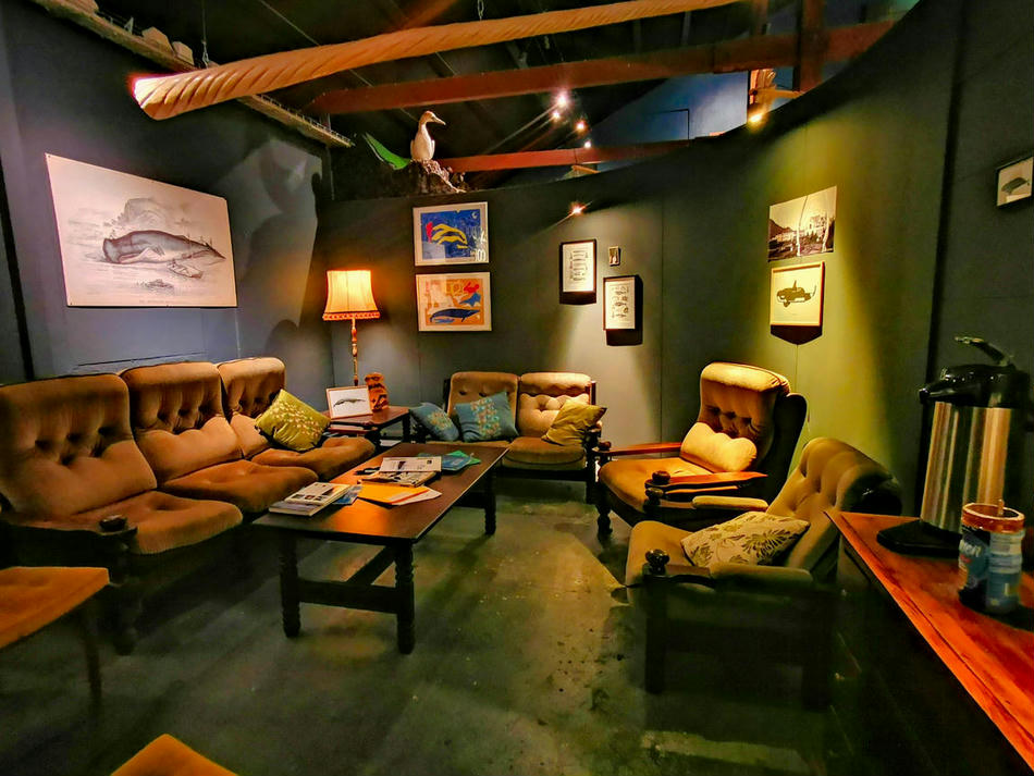 Kaffee stand zu jeder Zeit auf dem Tisch. Im offiziellen Gebäudeteil gab es noch einen riesigen Aufenthaltsraum mit Sofa und Fernseher, fünf Tischen mit Stühlen, einem Regal mit verschiedenen Spielen und Büchern, sowie einem Teleskopfernglas mit dem man Wale im Meer beobachten (suchen) konnte. Der Aufenthaltsraum oben war mit ganz vielen Fenstern versehen sodass es ein ebenso heller mit Sonnenlicht gefluteter wie warmer Raum war. Unser Zimmer war relativ klein und konnte leider nicht wirklich belüftet werden. Wir haben deshalb die Nacht über mit offener Tür schlafen müssen, da es sonst zu stickig geworden wäre. Ein Fenster zum Öffnen gab es (noch) nicht. Auschecken musste man bis 11:00 Uhr am nächsten Morgen. Wir wurden von der Inhaberin gefragt, wie unsere Reisepläne für diesen Tag sind und haben noch Tipps mit auf den Weg bekommen.