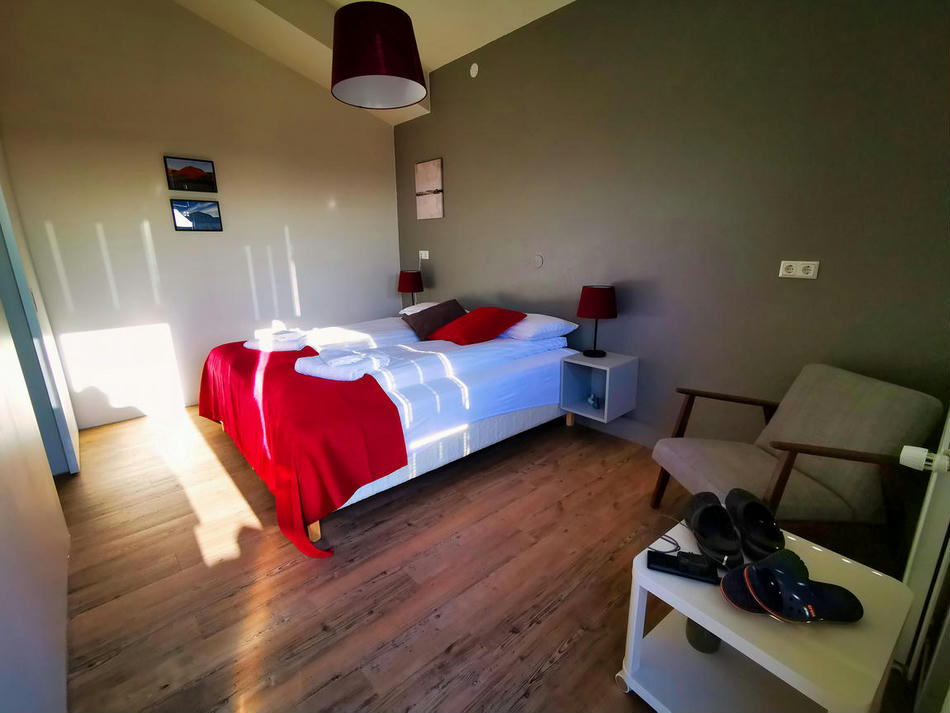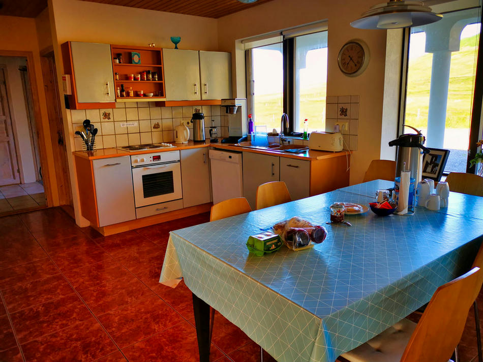 Von Akureyri sind wir über verschiedene Fischerdörfchen und durch mehrere Tunnel irgendwann hoch im Norden beim Guesthouse Gimbur angekommen. Das Guesthouse Gimbur scheint noch relativ neu zu sein und sieht sehr schick aus. Wir wurden herzlich von Hund und Eigentümerin begrüßt und wurden zu unserem Zimmer geführt. Wir hatten eigentlich ein Zimmer mit Gemeinschaftsbad gebucht. Geschlafen haben wir aber in einem neueren Gebäudeteil, in dem wir ein eigenes Bad mit Dusche und Toilette am Schlafzimmer hatten.