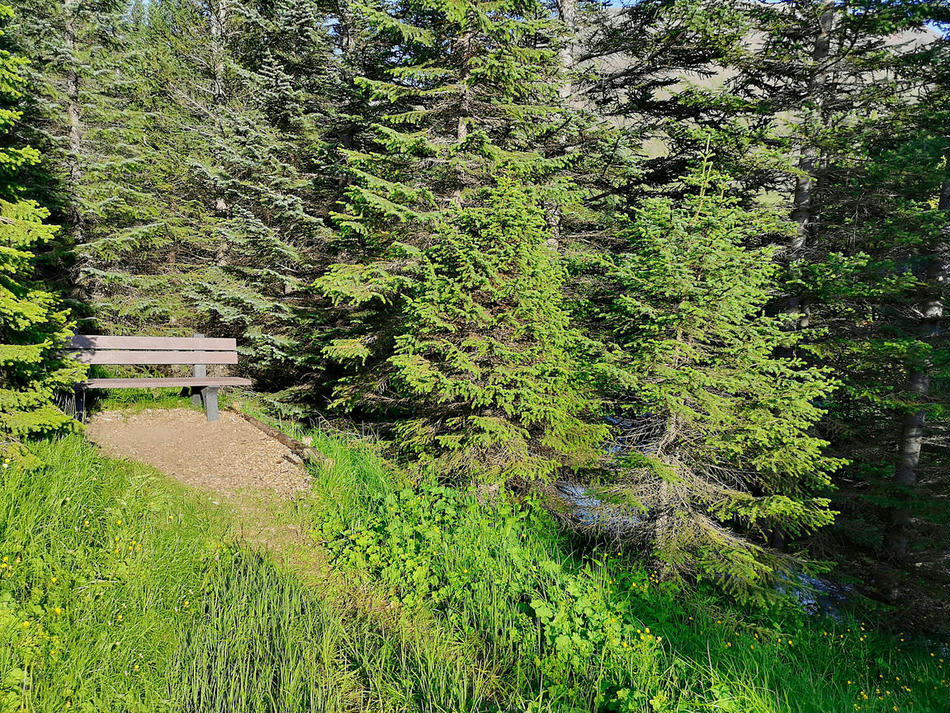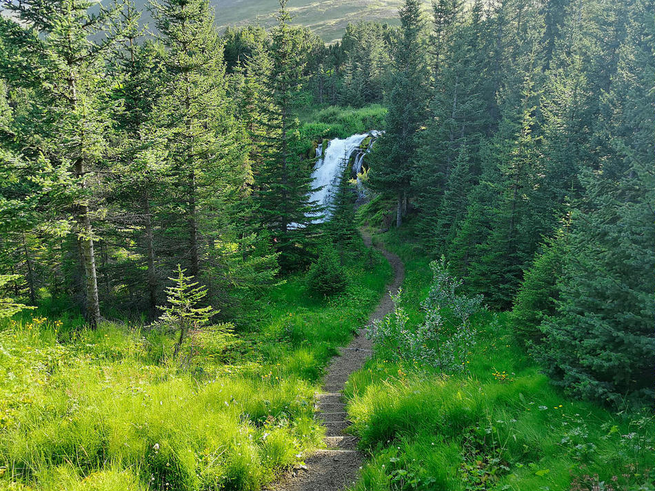 Nach einigen Metern (vielleicht 50, vielleicht 150?) kam ich an einen etwas offensichtlicheren Weg, der mit Rindenmulch ausgelegt war. Meine Hoffnung war, dass wenn hier ein Weg ist, hier auch etwas sein musste. Vielleicht ja der Leyningsfoss?