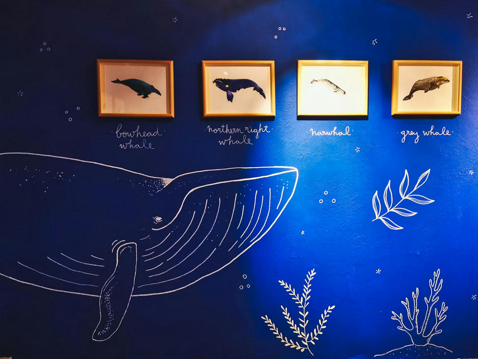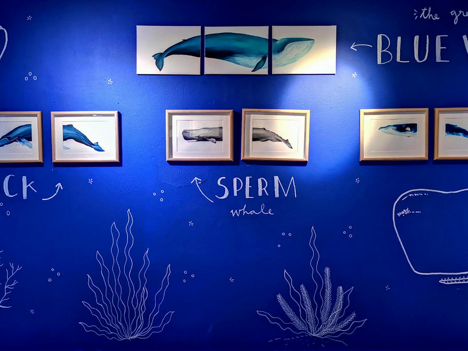 Im oberen Teil gab es neben der Ausstellung diverser Skelette noch einen Teil über die (inzwischen verbotene) Waljagd, einen Film über Wale und einige echte Teile von Walen zum Anfassen (z. B. ein Teil einer Rückenflosse eines Delfins oder auch Teile von Schwanzflossen liegen hier aus). Zu guter Letzt befinden sich hier noch einige künstlerische Räume, die auch ohne Kunstaffinität sehr nett anzuschauen sind.