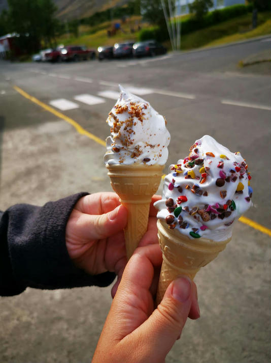 Wir haben uns zuerst im direkt neben der Tankstelle gelegenen Restaurant/Shop ein islandtypisches Softeis geholt und sind dann langsam in Richtung Sea Monster Museum geschlendert.