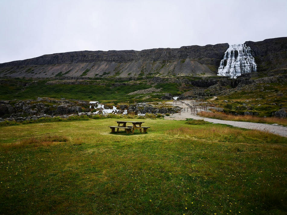 Am Dynjandi selbst befindet sich ein recht großer Parkplatz. Als wir hier ankamen, war der sogar schon ziemlich voll, auch wenn das nicht vergleichbar mit Seljalandsfoss-Verhältnissen ist. Wir haben noch problemlos einen der ca. 25 Parkplätze bekommen.