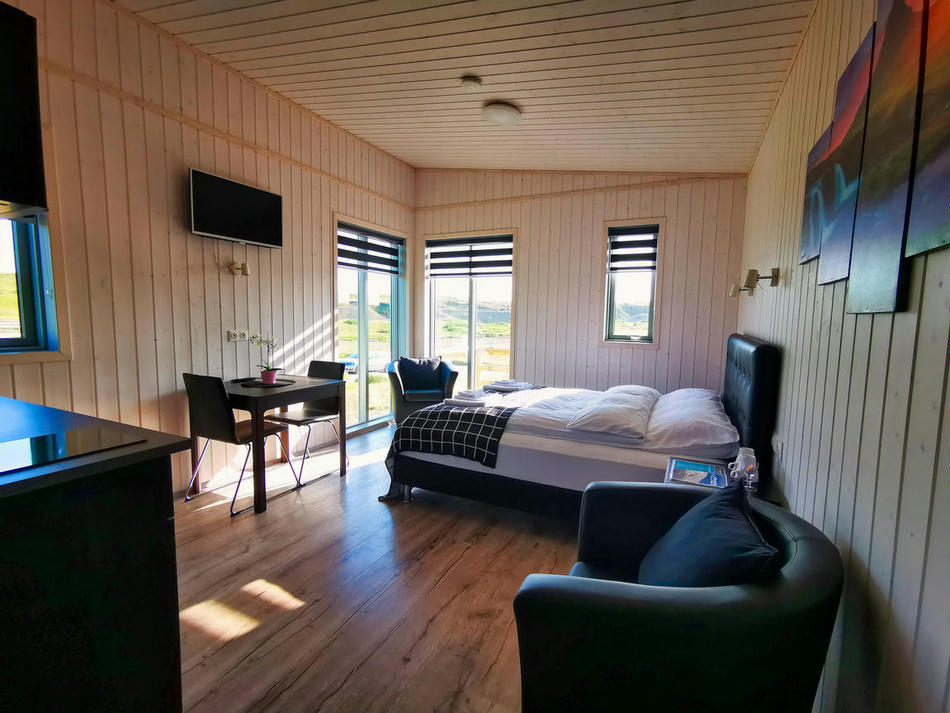 Den Eigentümer haben wir auch hier wieder nicht selbst kennen gelernt. Ca. eine Woche bevor wir hier einchecken sollten, haben wir eine E-Mail bekommen, dass er uns leider nicht persönlich in Empfang nehmen kann, aber schon einmal eine Anleitung schickt, wie wir in die Hütte kommen. In der E-Mail stand auch, dass wir uns auf jeden Fall melden sollen, wenn wir drin sind. Dies haben wir auch nach Ankunft gemacht und sehr schnell eine Antwort bekommen. Um zu dieser abgelegenen Unterkunft zu kommen braucht man keinen 4x4. Man muss sich aber darauf einstellen, dass es eine ordentliche Ruckelpiste ist – egal von wo man kommt. Diese Unterkunft eignet sich besonders gut wenn man nach Landmannalaugar fahren möchte! Also zusammengefasst: Tolle Unterkunft, in der wir uns richtig wohl gefühlt haben. Sehr gut ausgestattet und mit einer perfekten Größe konnten wir hier mal wieder alle Sachen aus dem Auto holen und unsere Koffer schon einmal fürs Flugzeug packen. Wir würden gerne noch einmal wiederkommen, um hier für ein paar Tage auf Nordlichtsuche zu gehen.