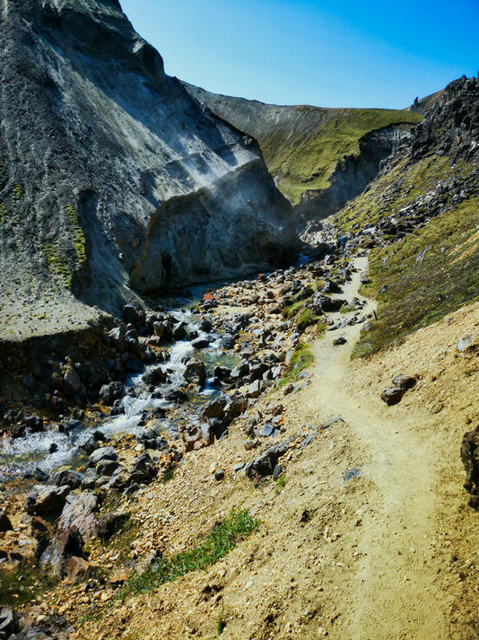 An den stinkenden Dampfsäulen selbst haben wir uns gar nicht lange aufgehalten. Im ganzen Landmannalaugar Gebiet soll es mehrere Stellen geben mit vulkanischer Aktivität, daher kommt übrigens auch der Name: Landmannalaugar heißt übersetzt so viel wie “die warmen Quellen der Leute von Land”.