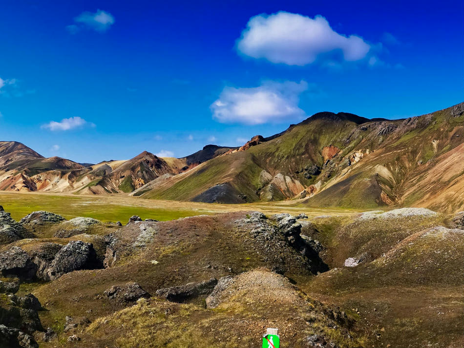 - Bláhnúkur: 5,7 km in 2,5 – 3,5 Stunden, lt. Aushang „Moderate hike“